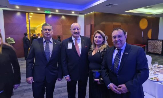Nuestro Presidente en ejercicio, Ludwin Pfeiffer y presidente electo, Raúl Pereira y sra. junto al Representante del Presidente de RI don Daniel Elicetche en la Cena de Gala de la 98° Conferencia del Distrito 4320.