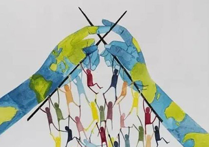 Este dibujo es de Anja Rozen, una estudiante de primaria de 13 años en Eslovenia. Ella fue elegida entre 600000 niños alrededor del mundo para crear una pieza de arte para mostrar cómo es la paz. Ella es la ganadora del concurso internacional Plakat Miru. «Mi dibujo representa la tierra que nos une» “Los humanos